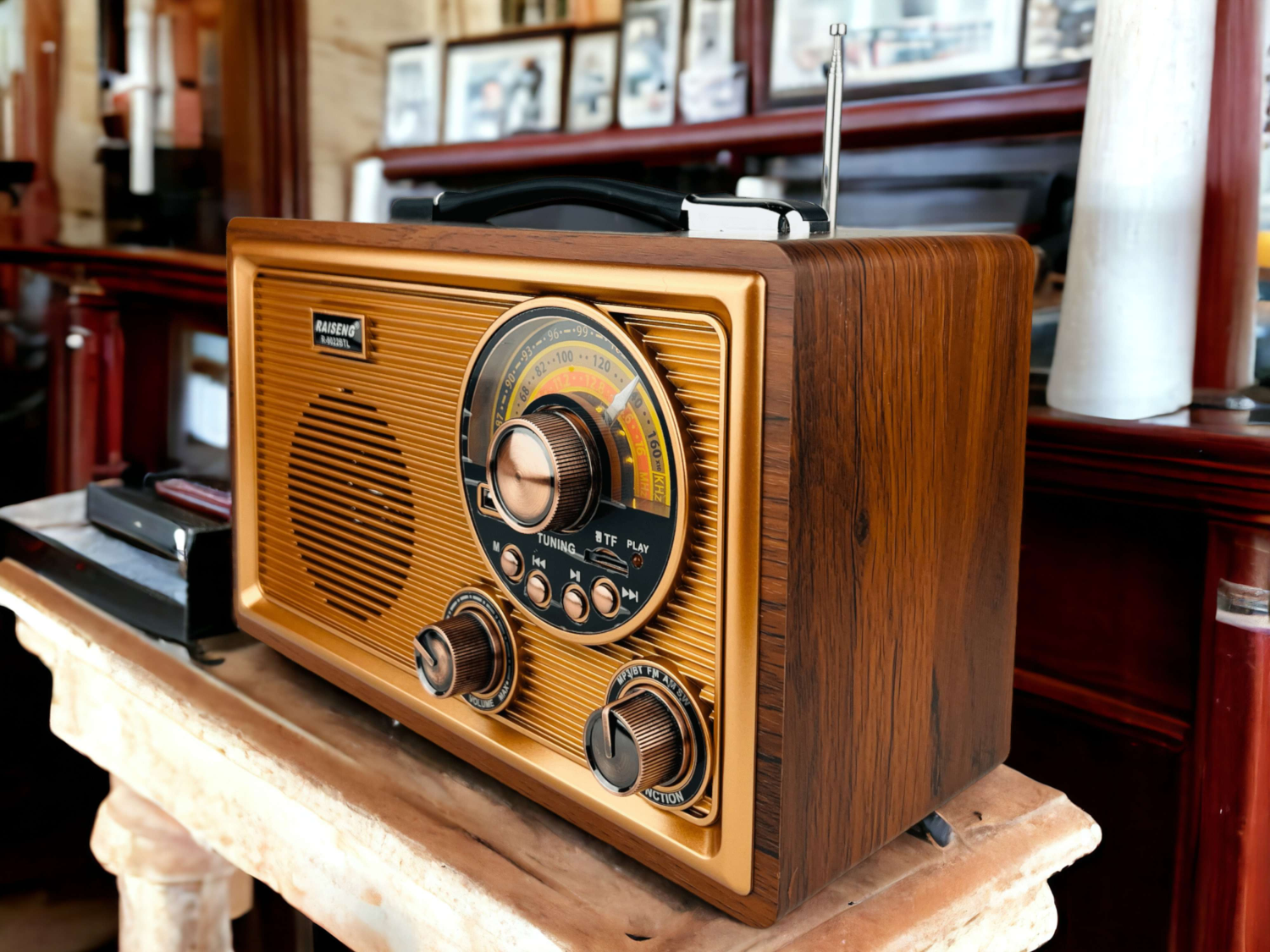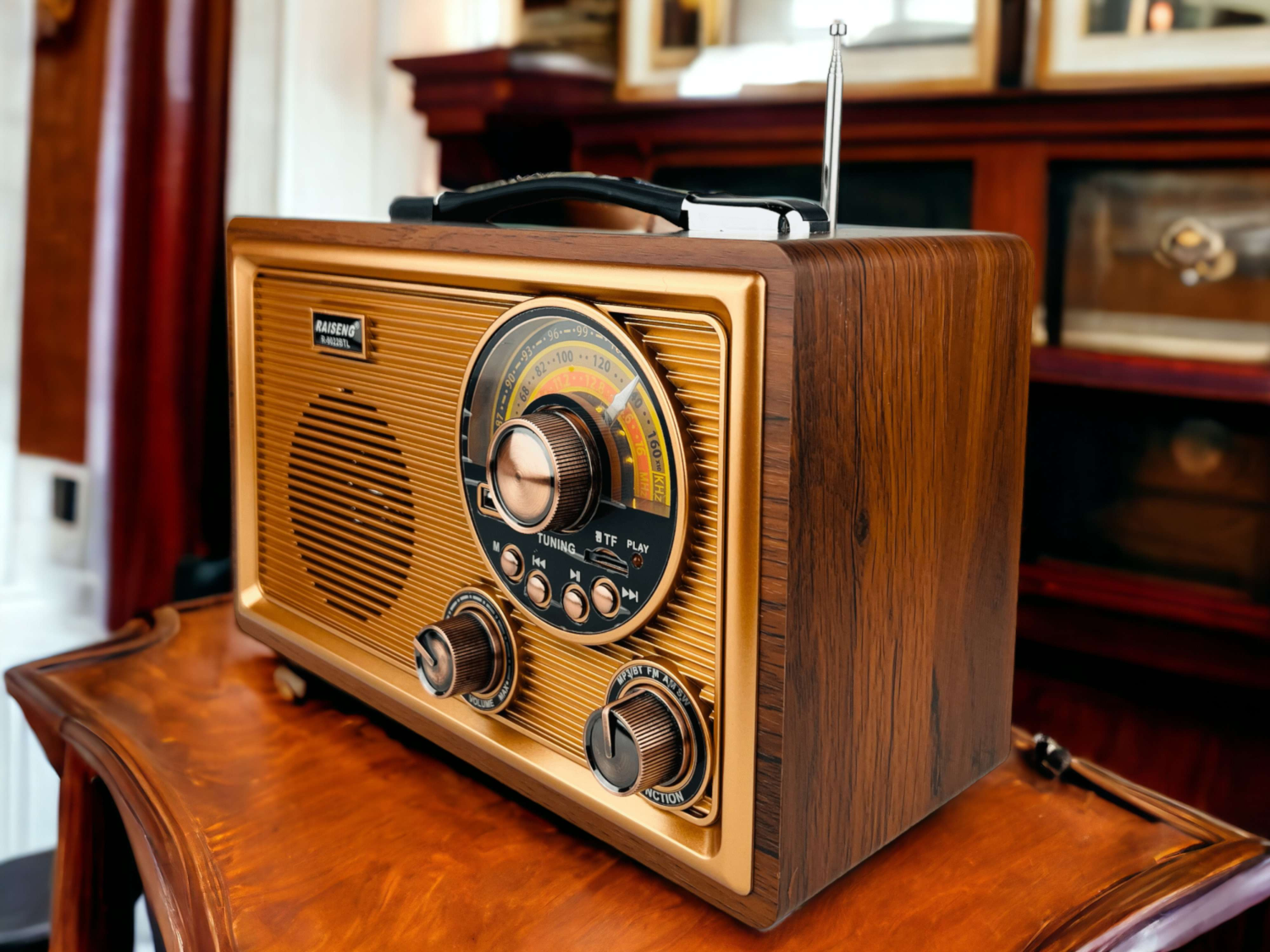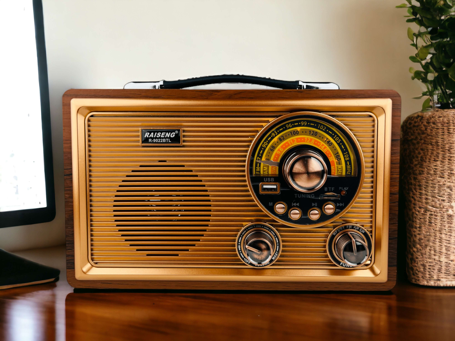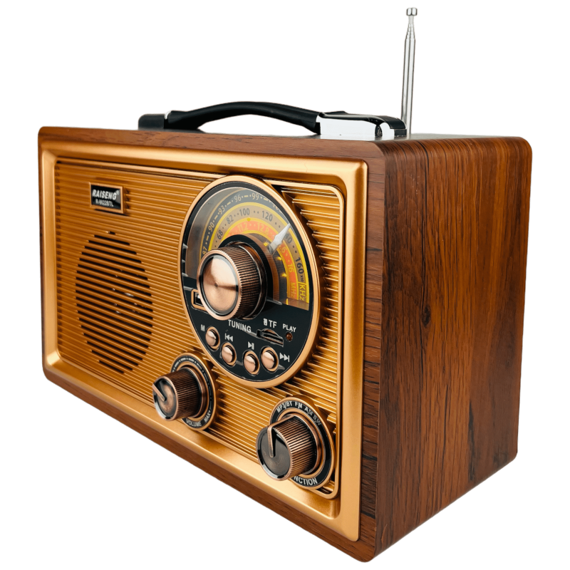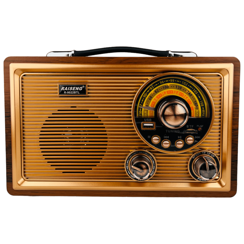 شكل مميز مشابة لشكل الراديو القديم مع اضاءة خفيفة ومقبض مميز الشكل للحمل